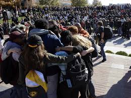 To accomplish that, Jonathan Butler, a graduate student here at Mizzou, went on a Hunger Strike about two weeks ago, declaring that he would not eat until Tim Wolfe resigned from his position. What shocked me was that this went on for EIGHT days, and that although Wolfe stated he was concerned for Butler’s health, he did absolutely nothing to ensure the health and safety of one of his students. In fact, it wasn’t until members of the football team declared they wouldn’t play until Wolfe stepped down, which resulted in the entire team following suit, that Wolfe resigned. That was almost a week after the Hunger Strike began. An article by the New York Times summed it up perfectly: “The Missouri athletes showed that the color that matters most is green.” But as an educator, I would have expected Wolfe to be more concerned about the wellbeing of one of his students than his position.